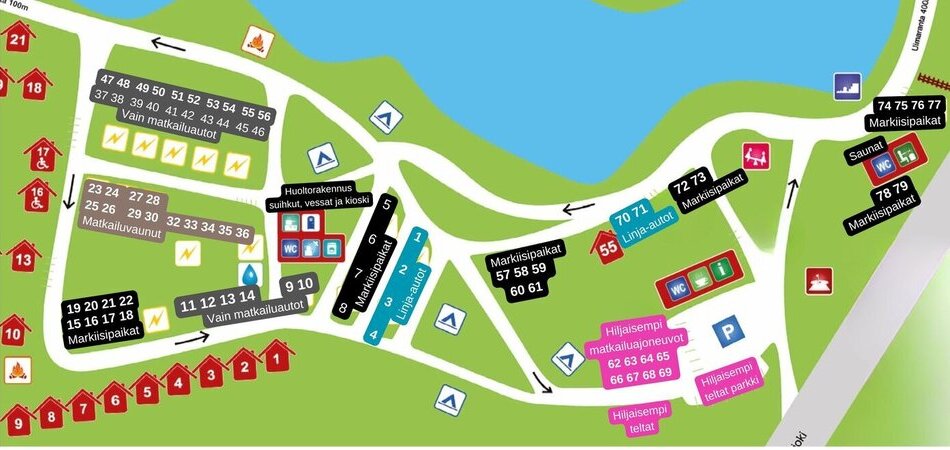 Uutuutena hiljaisempi alue matkailuajoneuvoille, jossa juttelu ja musiikki kielletty yöaikaan klo 22-9 (täyttä hiljaisuutta alueelle ei saada läheisen tien ja alueelta kuuluvien äänien vuoksi). Vieressä myös hiljaisempi teltta-alue.